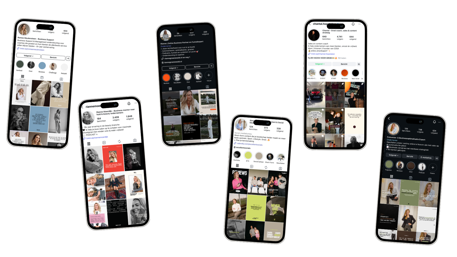 Een complete upgrade van jouw Instagram met op maat esthetische templates, feed optimalisatie, storytelling advies en een uitstraling die droomklanten aantrekt.